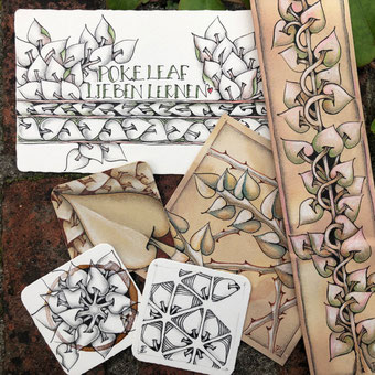 Ich hoffe, Pokeleaf ist jetzt ganz fest in eurem Musterreportoire etbliert und wird euch noch viel Freude machen - mal als einzelnes Blättchen in einer Ecke, mal als Haufdarsteller auf einer Kachel.