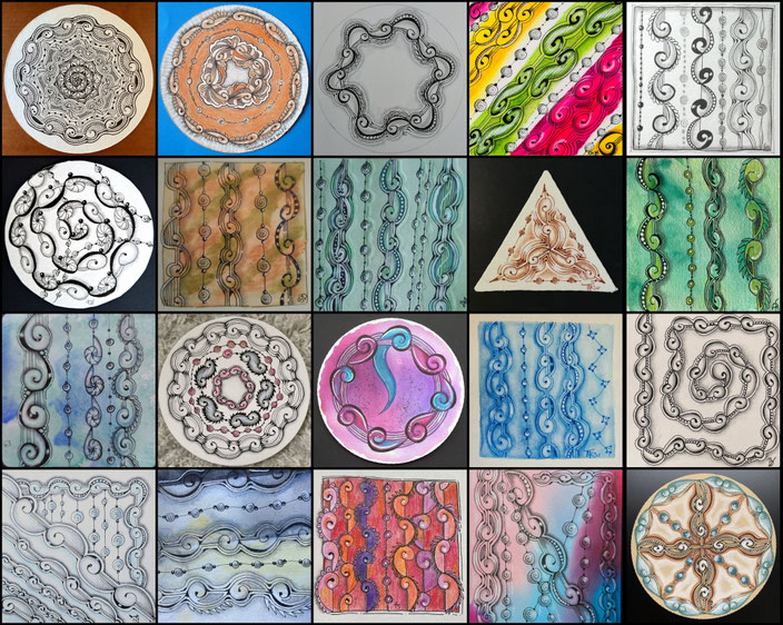 "Wie heißt das Muster dieses Tangle-Abends denn nun?" habe ich mich gefragt. Ich habe es in einem Buch unter dem Namen Raschel gefunden - vermutlich ein Druckfehler, denn online findet ihr Lin Chius Stepout unter der Bezeichnung Rashell.